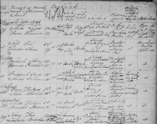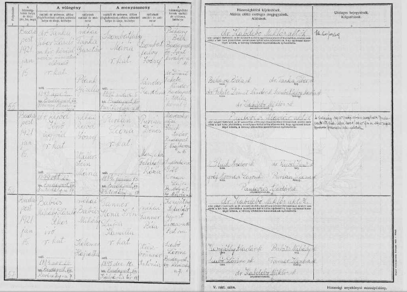 Néhány példa házassági anyakönyvre.
