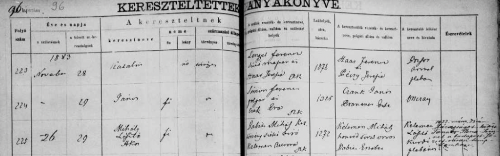 Egyházi anyakönyv, Babits Mihály keresztelési anyakönyve: